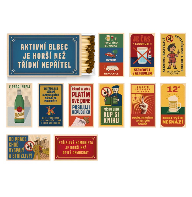 Dlouhé retro zápalky, které si neberou servítky. Na první pohled obyčejná krabička sirek - ale místo klasických motivů