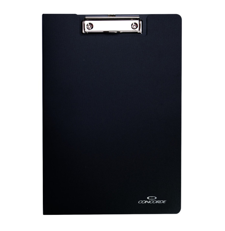 Kancelárské psací desky s klipem a uzavíratelnými deskami z polypropylenu o rozmeru A4. V cerném provedení a kovovým
