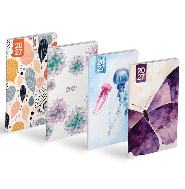 Týdenní diář 2027 s lesklým lamino povrchem je ideálním nástrojem pro každodenní organizaci. Je navržen tak, aby vás