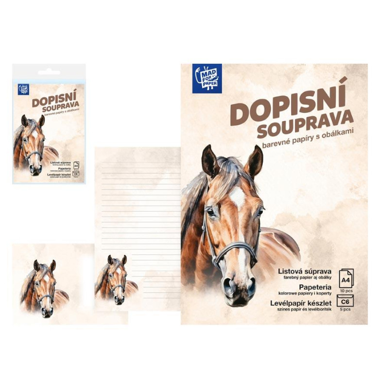 Dopisní souprava s motivem koně potěší zejména milovníky těchto ušlechtilých zvířat. Je určena pro psaní dopisů a