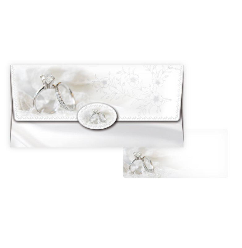 Obálka na peníze – svatební prstýnky a květinová kresba