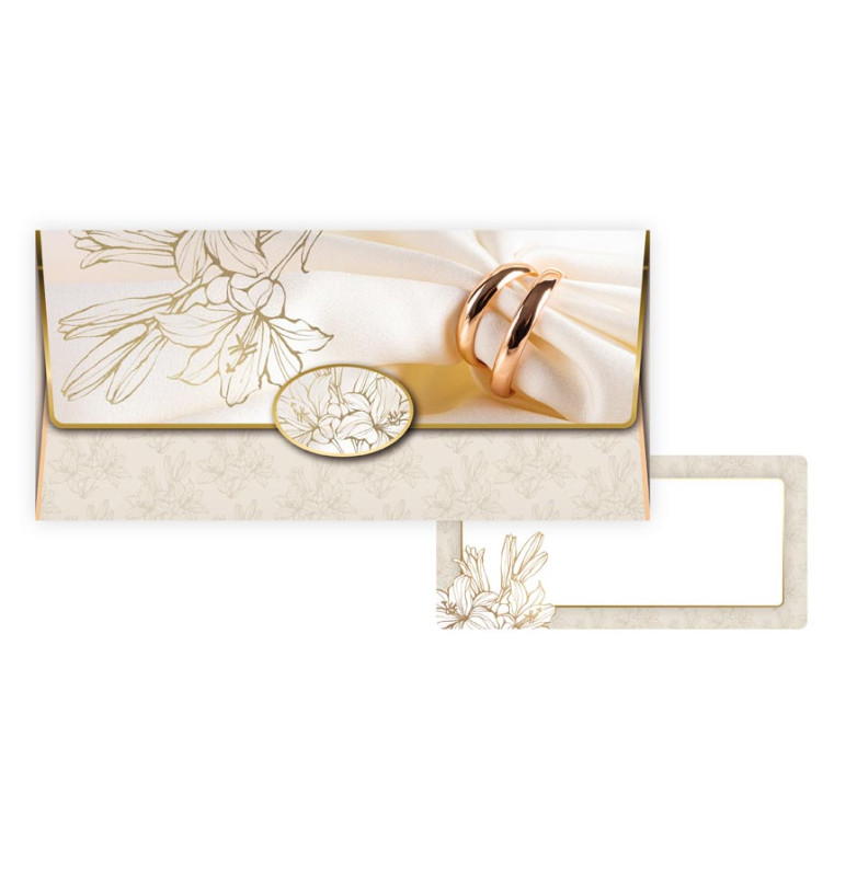 Obálka na peníze – svatební prstýnky a květinový dekor