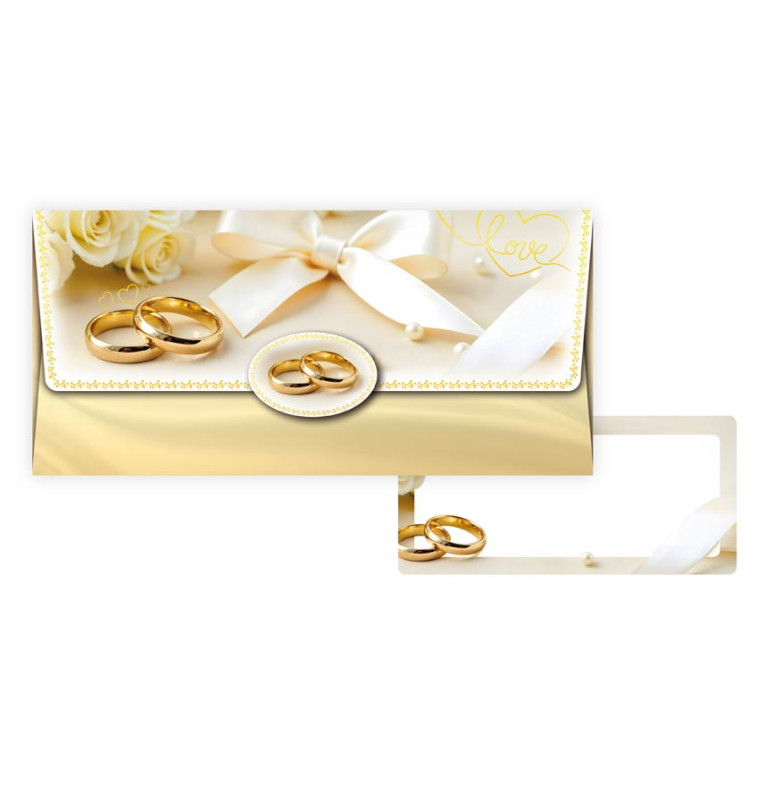 Obálka na peníze – svatební prstýnky a zlaté tóny