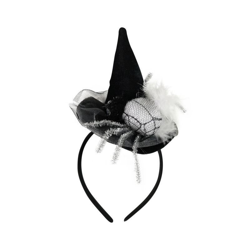 Nepřehlédnutelná čelenka s mini kloboučkem a pavoukem je senzačním doplňkem na párty či karneval. Ideální do vlasů při