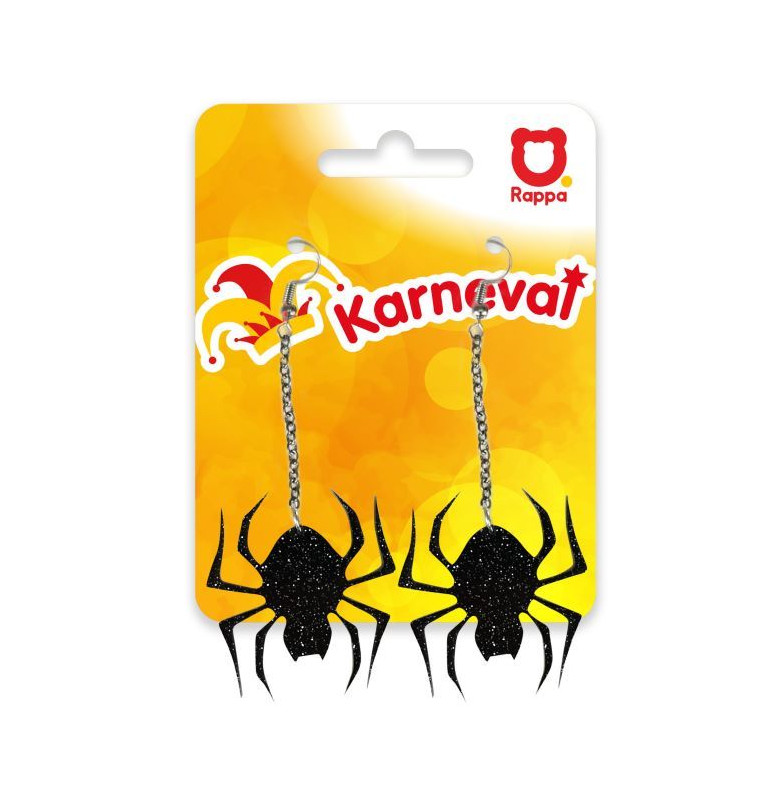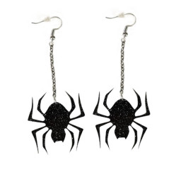 oslavě! Visací náušnice jsou zdobeny černým třpytivým pavoučkem.