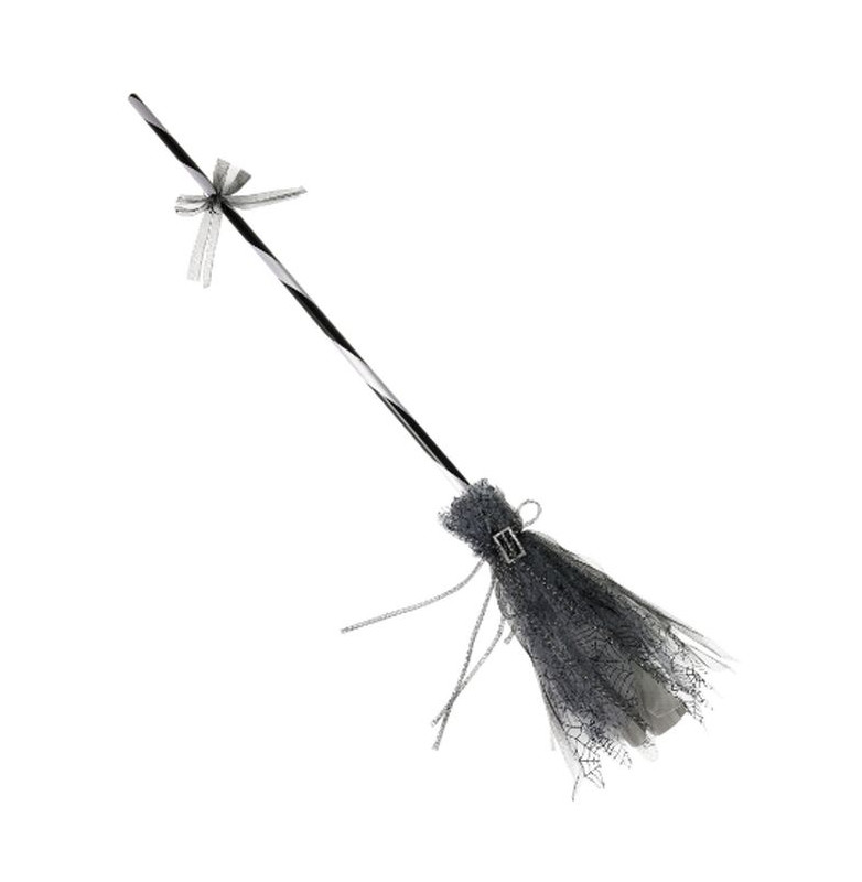 roztomilé košťátko zdobené stříbrnou sponou potěší každou malou dívku, která chce uspět na čarodějnické párty nebo na