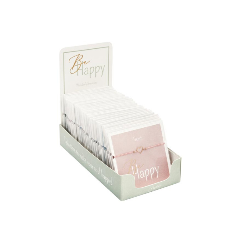 Každý náramek je připevněný na kartičce s nápisem „Be Happy“ a milým vzkazem na zadní straně. Potěší jako drobný