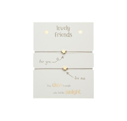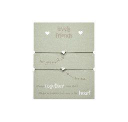 partnery. Každá kartička nese nápis for me / for you a obsahuje dva ladící náramky na jemné šňůrce s drobným kovovým