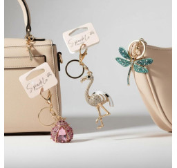 odráží světlo a díky jemným kamínkům působí jako malý ozdobný detail, který promění klíče, batoh nebo kabelku v něco