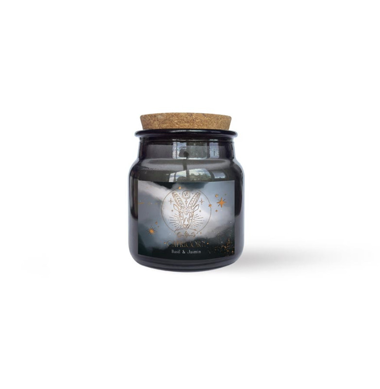 Dopřejte si kouzlo astrologie s touto výjimečnou svíčkou navrženou speciálně pro znamení Kozoroha. Luxusní tmavé sklo v
