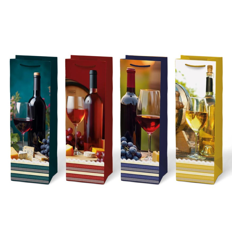 Dárková taška T12 je ideální volbou pro láhev vína, sektu nebo jiný výběrový nápoj. Elegantní design s realistickými
