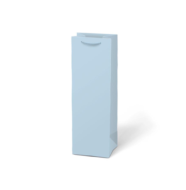 Kraftová dárková taška T 12 ve světle modré barvě je určená pro zabalení láhve vína, oleje, sirupu nebo jiného dárku