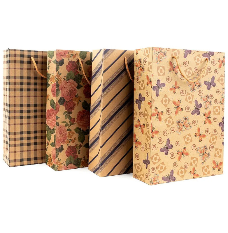 Dárková taška z pevného eko papíru. Rozměr tašky 24 x 33 x 8 cm. Dodáváme mix potisků podle skladových zásob.