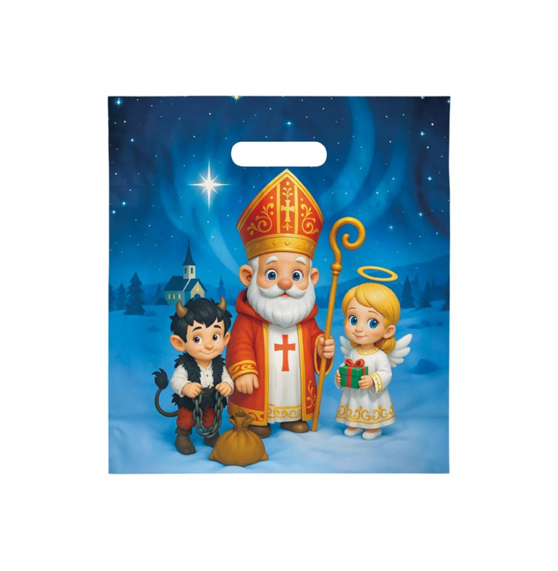 Mikulášská nadílka má být plná radosti – a přesně o to se postará taška MFP s motivem Mikuláše, anděla a čerta.