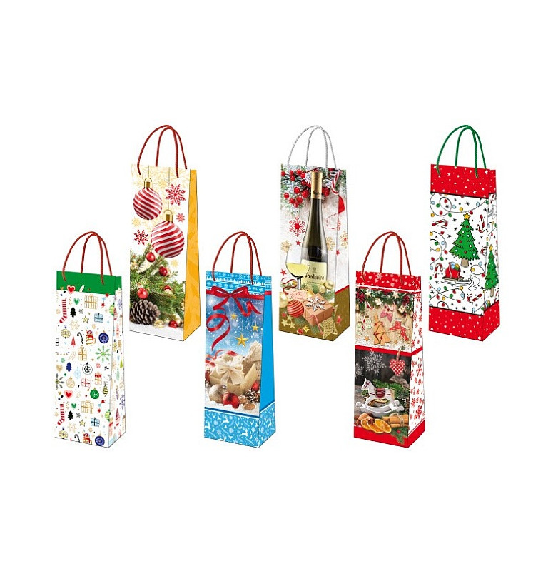 Vánoční taška papírová 12.5 x 35 x 9 cm LA dárková na lahev Aria