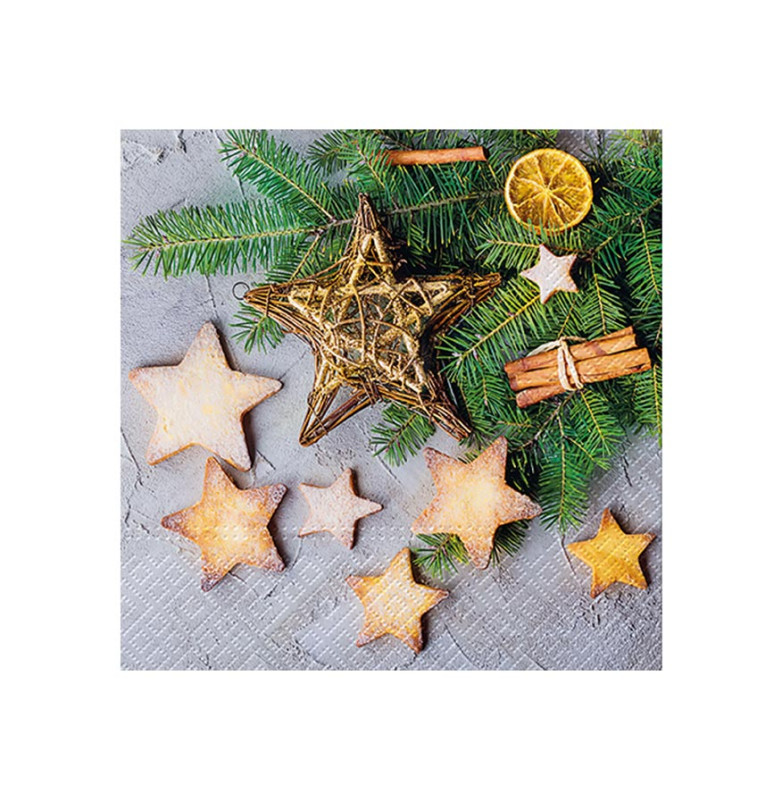Vánoční ubrousek s motivem proutěné hvězdy a vánočního cukroví