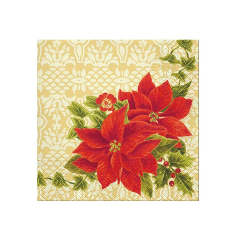 (poinsettie) v kombinaci se zelenými lístky a jemným vzorem krásně doplní každé slavnostní stolování.
