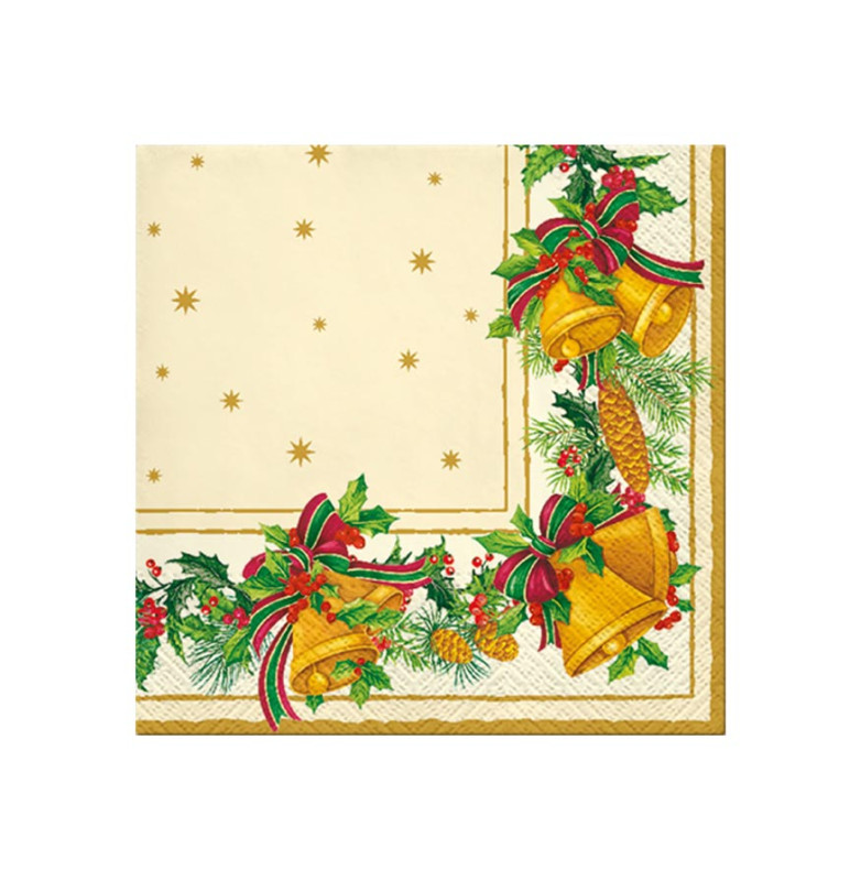 Dodejte svému stolu nádech opravdového svátečního kouzla. Tento ubrousek kombinuje motiv tradičních zlatých zvonků s