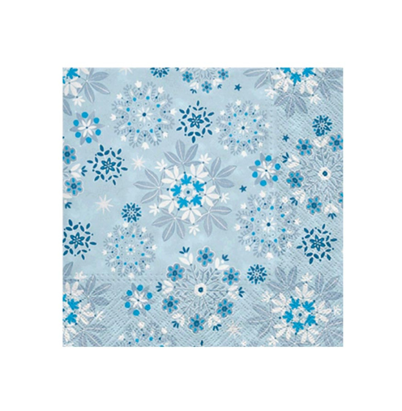 Ubrousek s jemným modrým podkladem a motivem sněhových vloček navodí tu pravou zimní atmosféru. Kombinace bílé, modré a