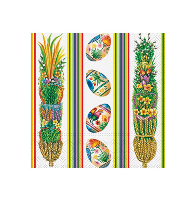 Velikonoční papírový ubrousek s folklórním motivem vnese na sváteční stůl radostnou jarní atmosféru a nádech tradice.