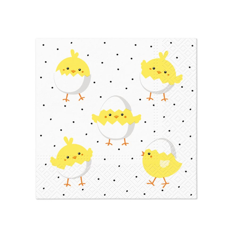 Papírový velikonoční ubrousek. Krásné velikonoční ubrousky s obrázky kuřátek ve skořápce dodají prostřenému stolu